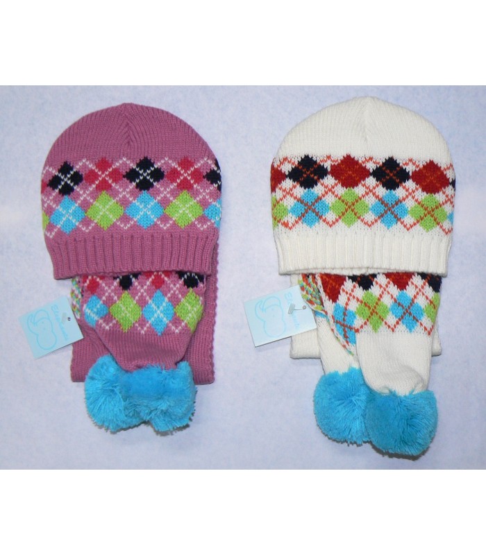 Conjunto de invierno para bebé de gorro y bufanda en rombos.