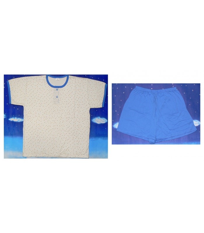Pijama para verano de manga y pantalón corto con dibujo clásico y apertura en cuello.
