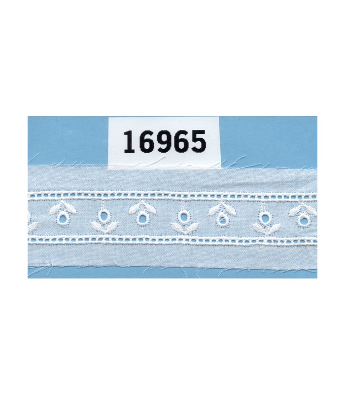 Pieza de 13,80 metros de tira bordada en algodón de la marca Bordados Unidos. Ancho: 3,5 cm. aproximadamente.