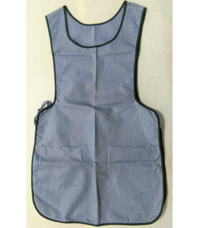 Casulla en dibujo de cuadros, con dos bolsillos frontales y lazos laterales de la marca Guilabert.
